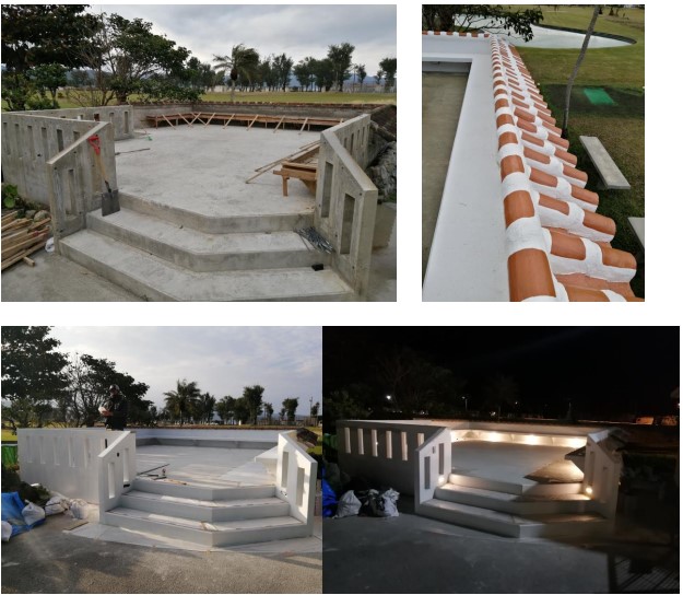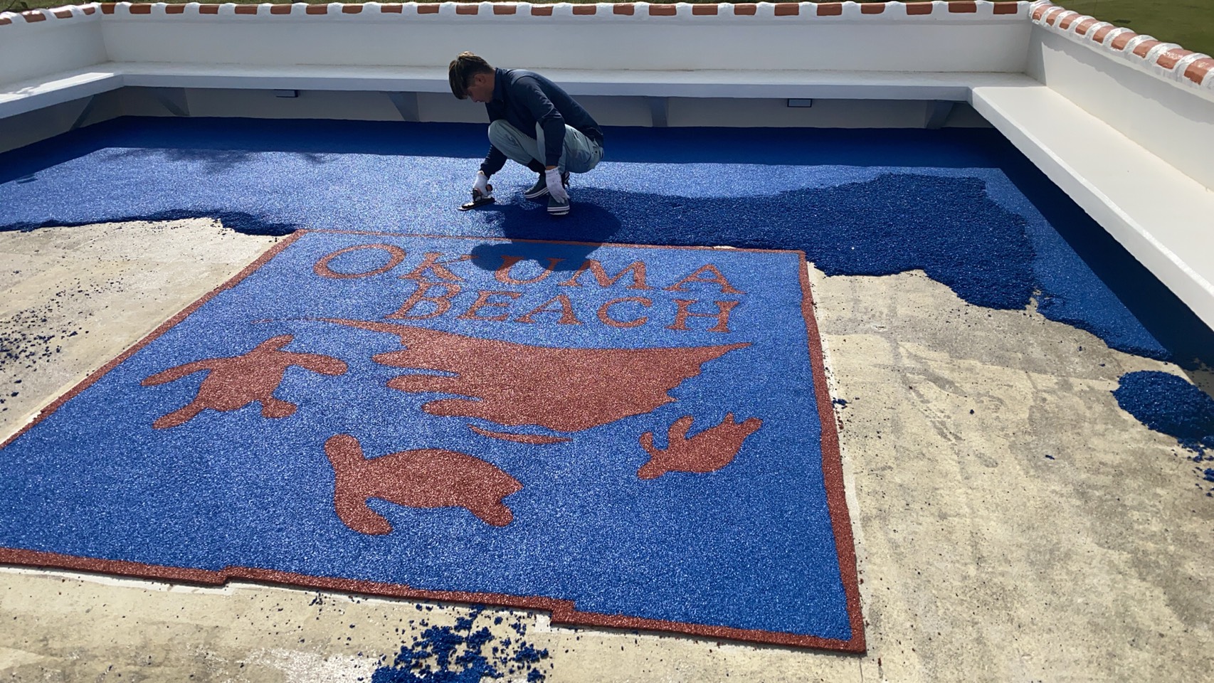 オクマビーチ パティオの再建設(木造 → コンクリート/ゴムチップフロア)