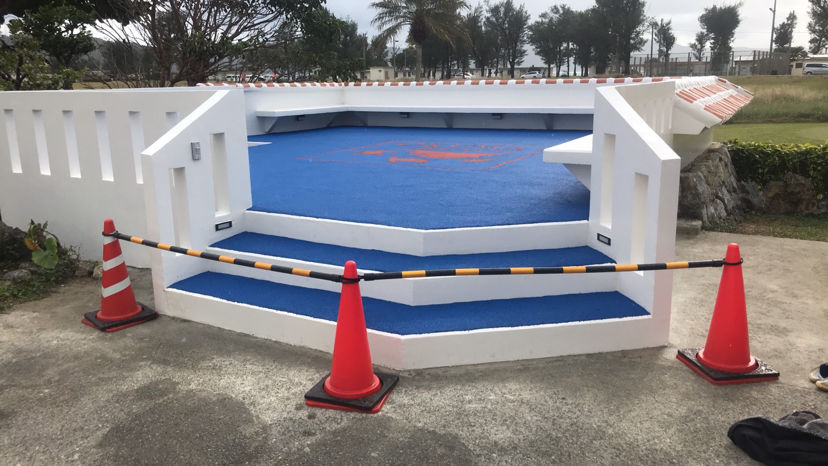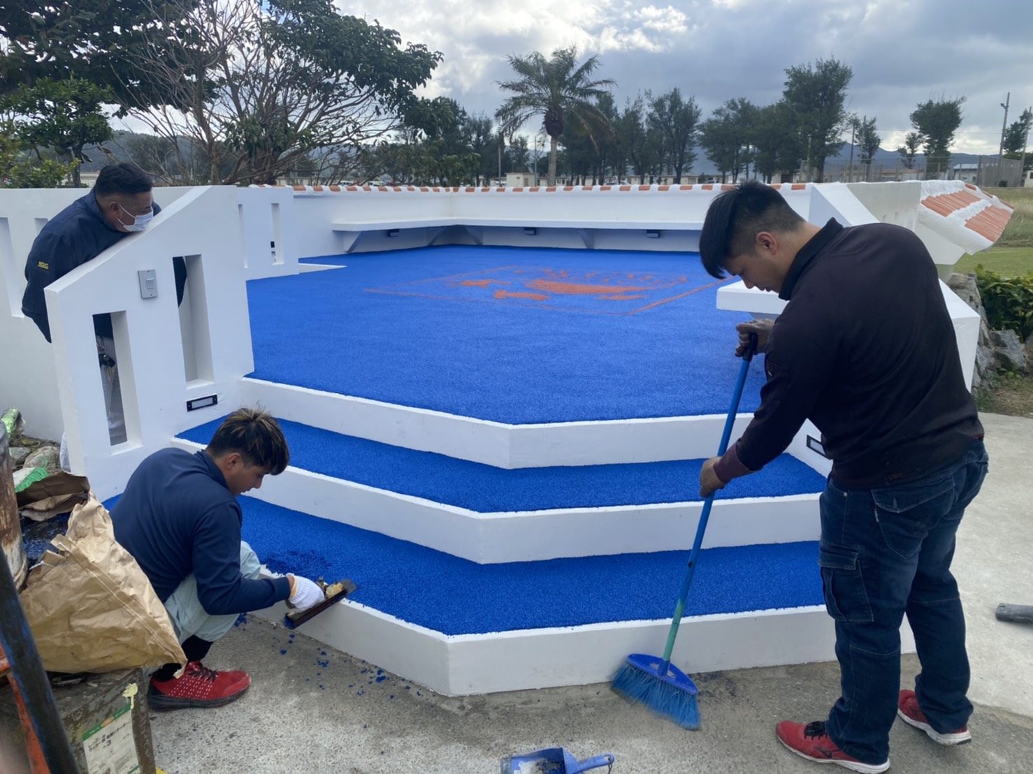 オクマビーチ パティオの再建設(木造 → コンクリート/ゴムチップフロア)